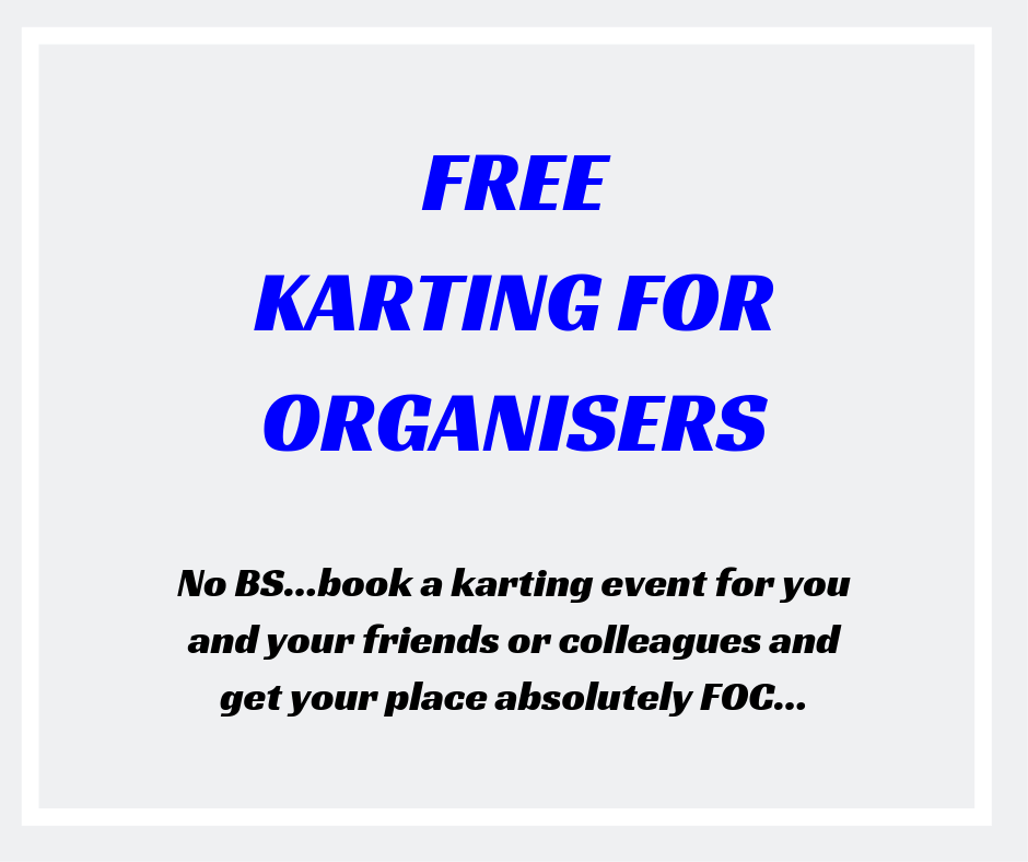 Simply be the organiser of a karting event for you and some friends or colleagues and you get to kart for ZIP, ZILCH, NADA, NOWT, NOTHING, or plain old FREE!!!